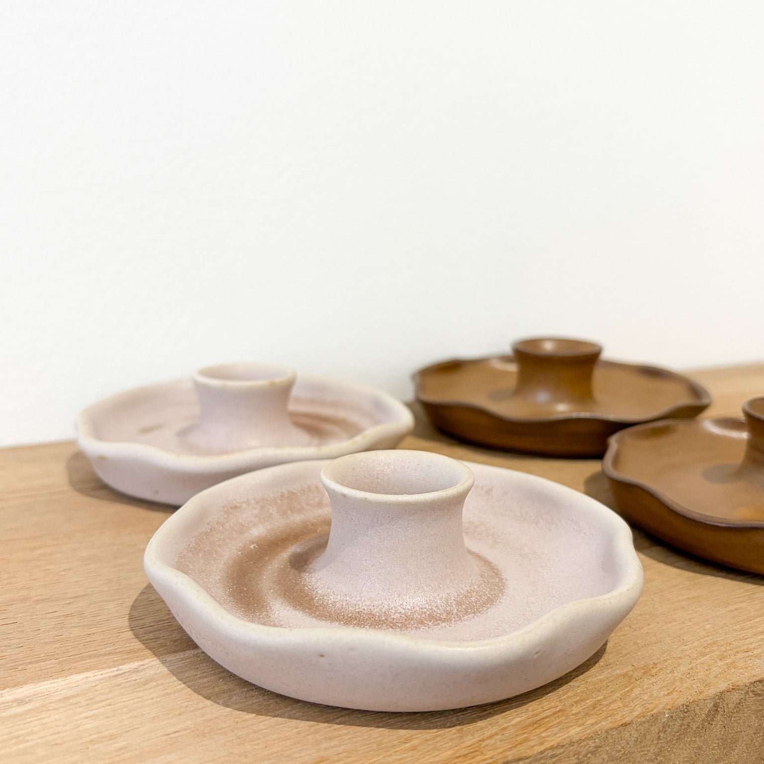 Bougeoir en Céramique Fait Main - vieux rose